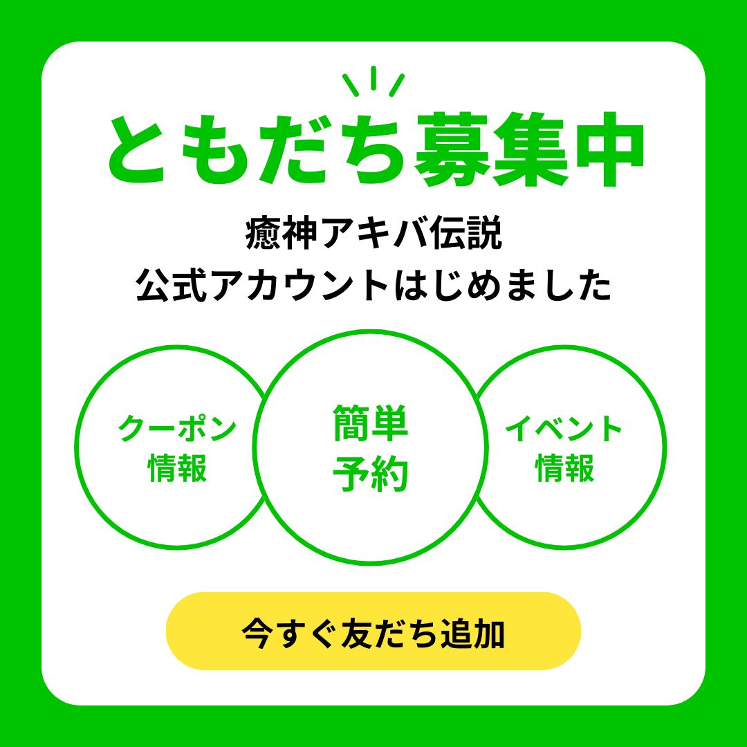 公式LINEはじめました 事前予約でスムーズにご案内。 📣 公式登録 🗓️ 事前予約 🔔 通知ONで取り逃しゼロ 今すぐ空き枠が確認、事前予約もかんたん。 おすすめ女性やキャンペーンも、いち早くお届けします。 事前予約はこちら ※通知はいつでもOFFにできます。※各特典は予告なく変更となる場合がございます。